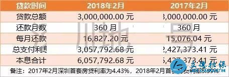 按照2018年2月上浮10%利率來算,貸款300萬元,每月還款16827.20元。這樣一算,今年買房貸款比去年每月多還貸款1751.16元,總利息要多還63萬多!聽著,要多掏這么大筆“血汗錢”,心都在“滴血”!