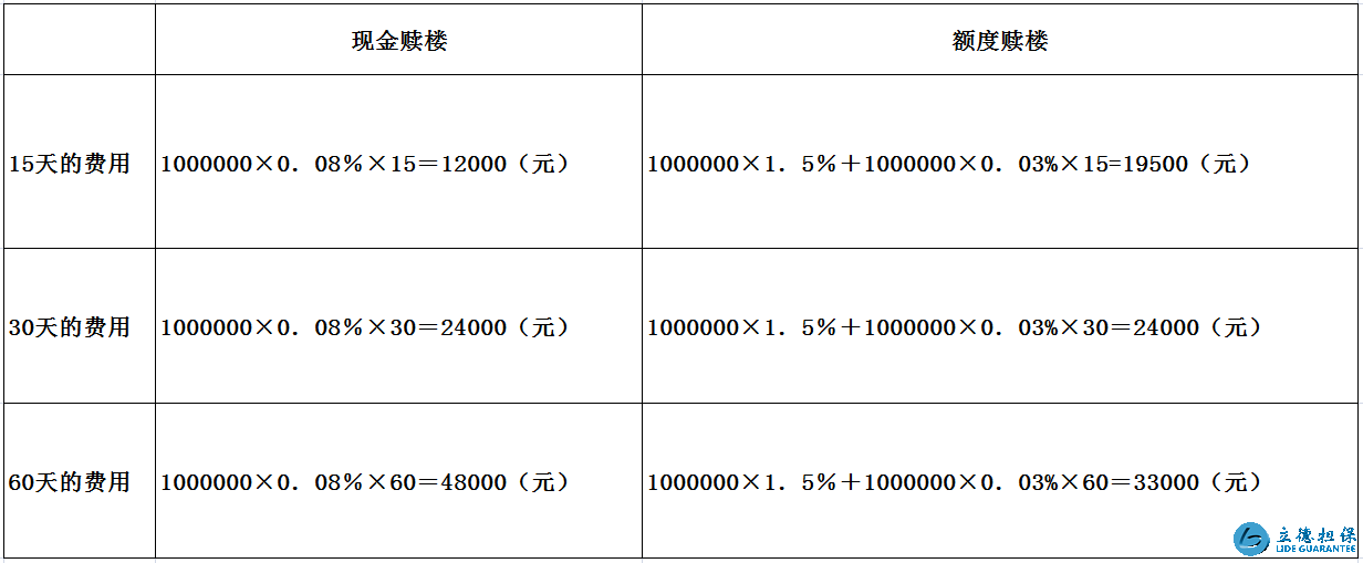 為了方便對比,我們舉例計算,假設贖樓的金額是一百萬元,分別以15天、30天、60天為贖樓周期也就是贖樓所需時間: