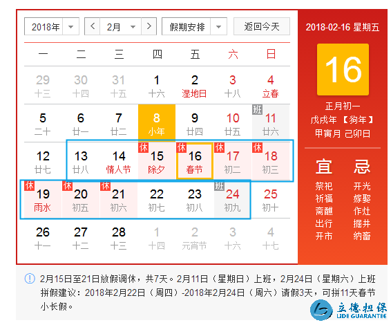 【立德?lián)!筷P于2018年春節(jié)放假的通知